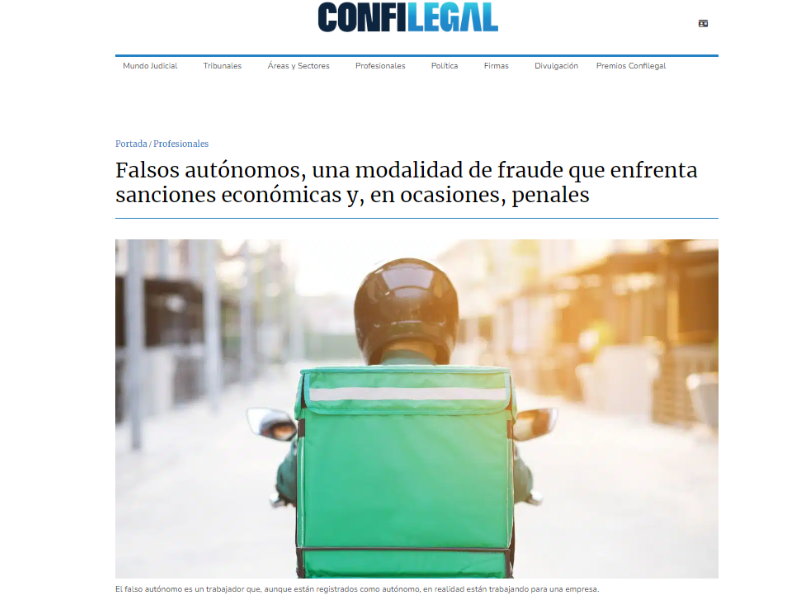 Confilegal recoge las declaraciones de nuestro socio fundador, Toni Botias Garcia, sobre el problema de los falsos autónomos, trabajadores que, aunque están registrados como autónomos, en realidad operan bajo un contrato laboral con una empresa.